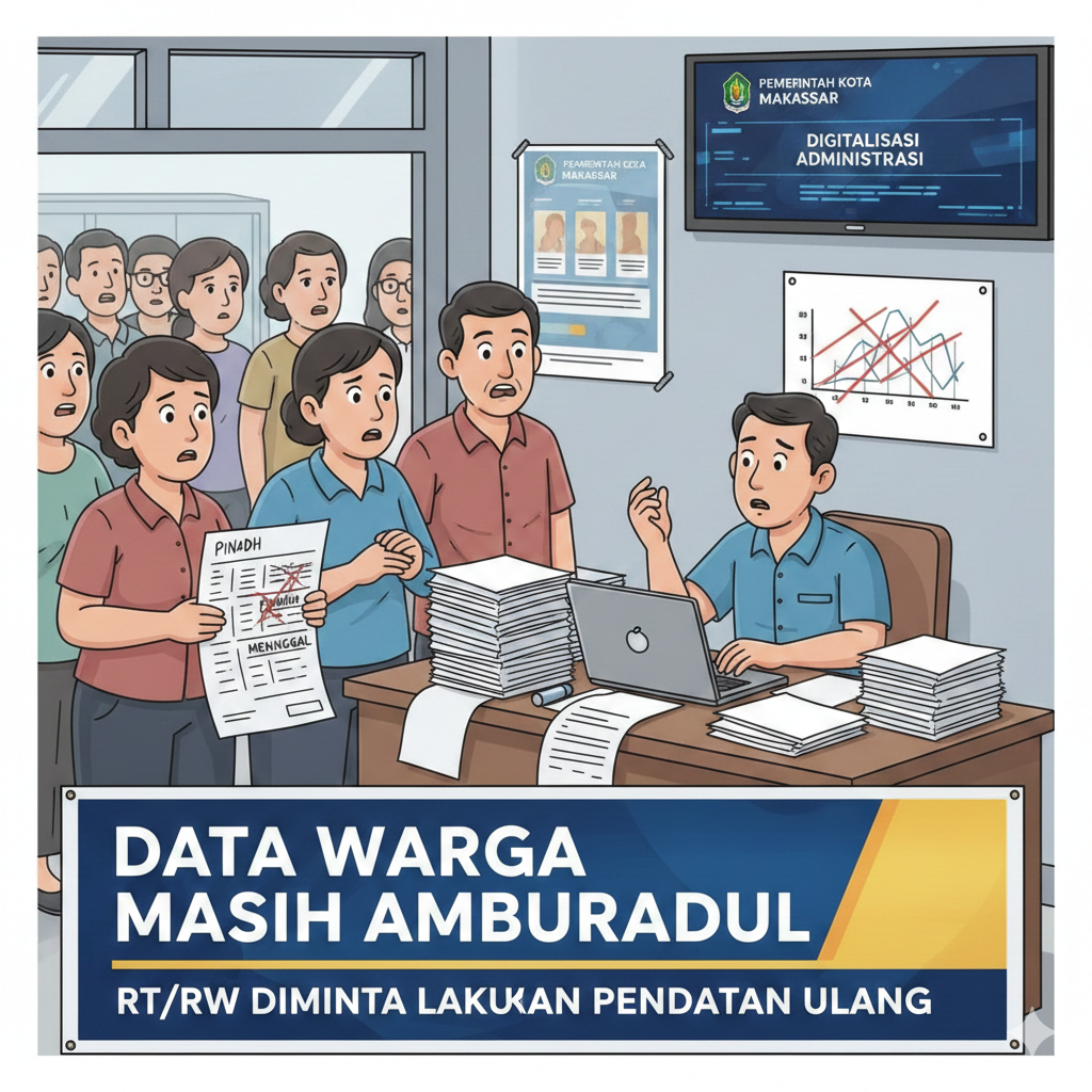 Makassar – Akurasi data kependudukan di tingkat lingkungan kembali menjadi sorotan warga. Sejumlah masyarakat berharap pemerintah melalui pengurus RT dan RW segera melakukan pembaruan data secara menyeluruh agar tidak lagi ditemukan nama warga yang sudah pindah domisili bahkan meninggal dunia namun masih tercatat sebagai penduduk tetap.