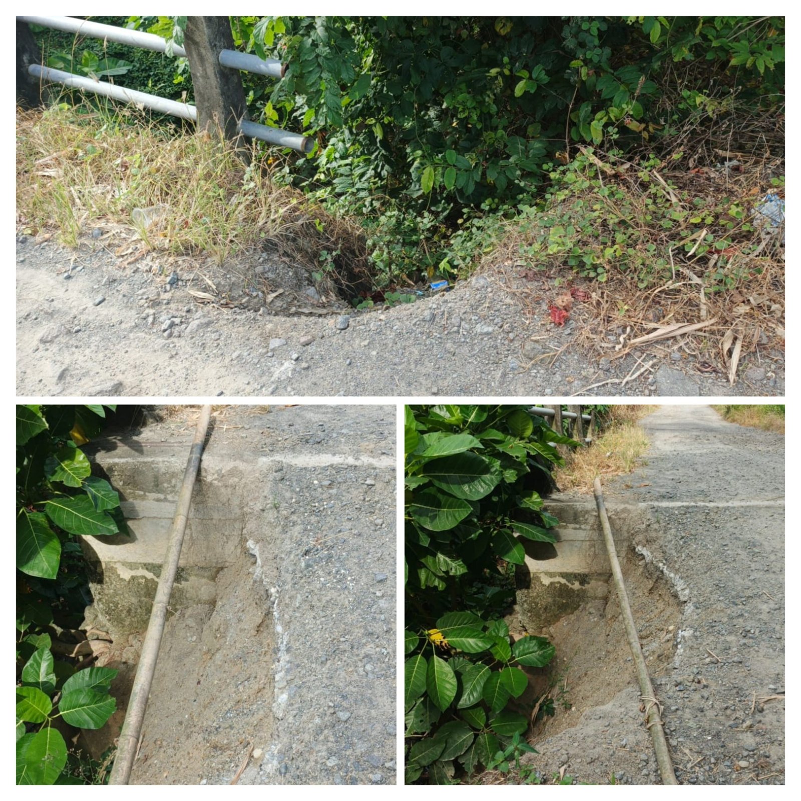 Selain kondisi jembatan yang rawan, permukaan jalan di sekitar lokasi juga terlihat berlubang dan tidak rata sehingga semakin meningkatkan potensi kecelakaan bagi kendaraan yang melintas.